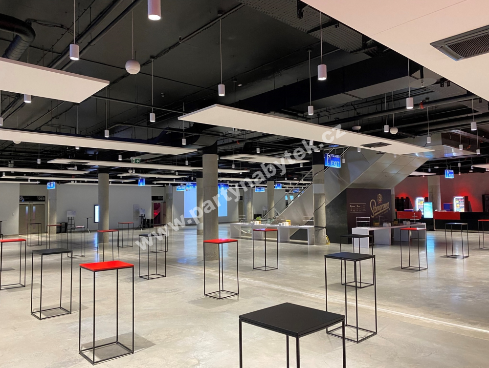 This loft-style party table has an eye-catching shape and will definitely attract attention. Our entire furniture collection Duplex is characterised by clean aesthetic and strict lines. This table combines a glossy engineered stone top with a slender brushed stainless steel structure that provides good stability and also enhances the impressive industrial look. We offer beautiful glossy boards in several colour variants. The advantage of the tables is easy handling, stackability of structures and boards. The tables have locking feet with protective end caps against abrasion of the floor. The beautiful plate stands out when used without a tablecloth.