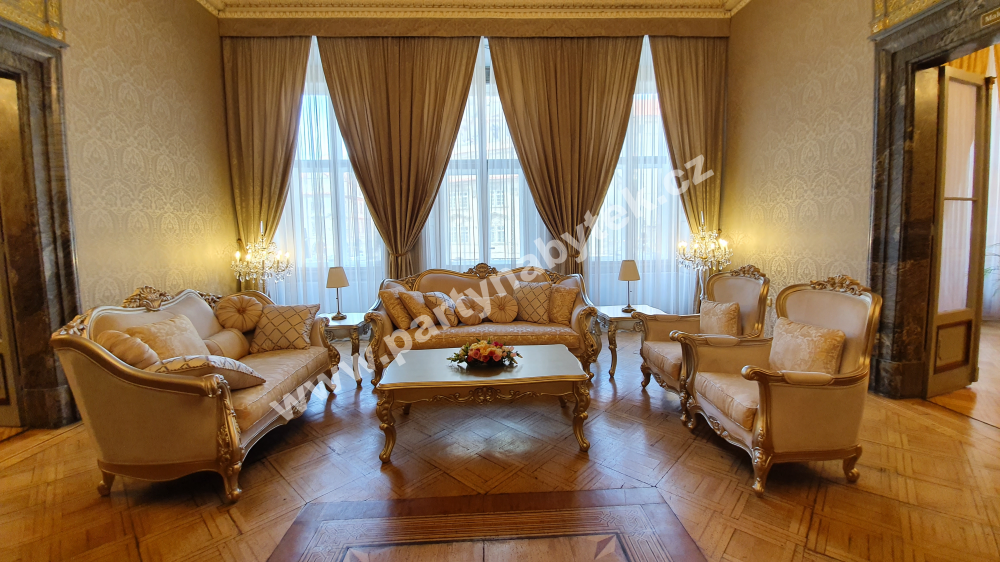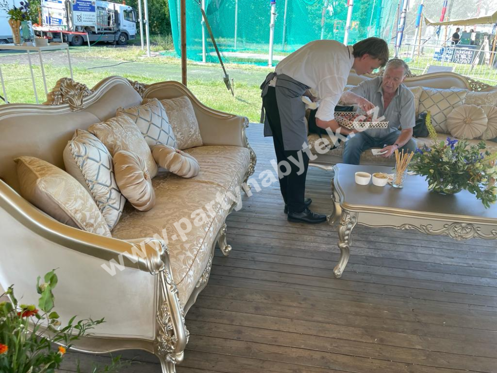 accents in every detail give the furniture maximum elegance. The wooden tables are in a golden shade with a period patina.