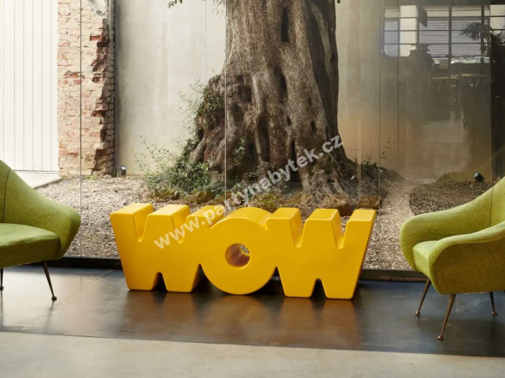 Hravý design, výrazné barvy a rafinovanost – lavička WOW vás bude bavit. Pro italskou značku Slide jí navrhl její zakladatel a designér Giò Colonna Romano. Lavička WOW patří k neobvyklému projektu s filozofií písma od tohoto proslulého designéra : slovo se stává designovým prvkem, který dokáže sdělit poselství. Lavička má stylizovaný tvar slova „WOW“, což znamená úžas a štěstí.