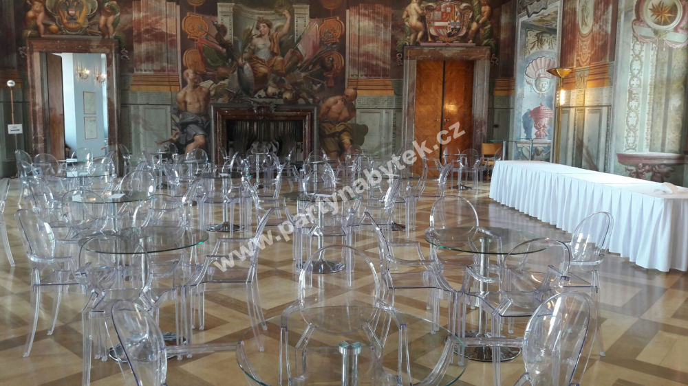 Elegantní design stolku plný lesku, kovu a skla dává lehkost a čistotu osobitému stylu. Svým vzhledem a zpracováním se hodí na většinu akcí a do většiny interiérů. Stůl s čirou skleněnou deskou je opatřený středovou chromovou nohou na kulaté základně ve vysokém lesku. Krásná skleněná deska je vhodná pro použití bez ubrusu.