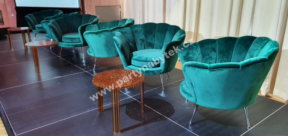 Okouzlující křesílko ve stylu proslulých francouzských kabaretů 20. let, inspirované překrásnou vodní lilií. Rozevřené okvětní lístky ve formě komfortního opěradla jsou doplněné pohodlným sedákem. Celé je potažené kvalitní látkou z měkoučkého sametu a honosí se precizním prošitím. Má štíhlé nožky vyrobené z nerezové oceli a kostru z masivní borovice. Celočalouněné provedení umožňuje umístění do volného prostoru.