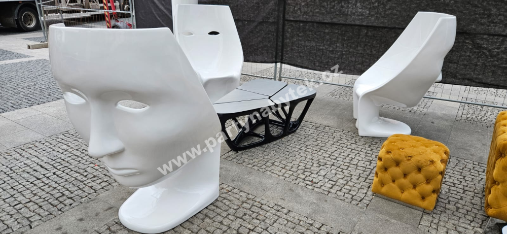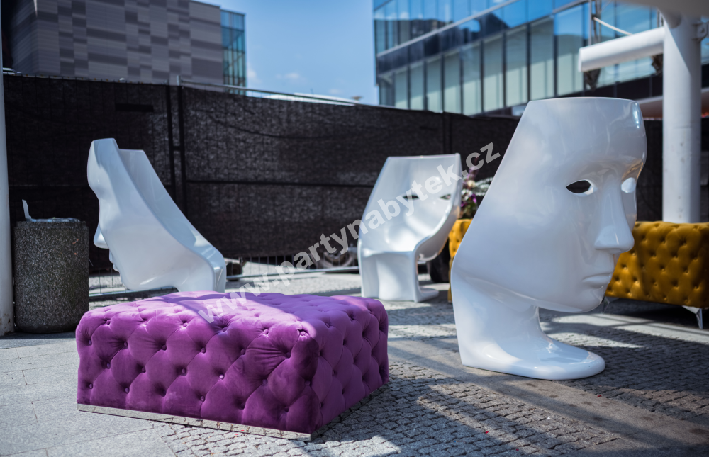 Ikonické křeslo Face Chair je moderní křeslo ve tvaru klasické divadelní masky používané ve starověkém Řecku. Jeho neobvyklá forma umožňuje, aby fungoval jako socha v interiéru. Sedadlo širokého tvaru skryje sedící osobu a vytváří zónu pohodlí. Toto křeslo snadno převezme roli dominantního prvku a stane se zároveň zajímavou dekorací. Celé křeslo je ze skleněného vlákna v bílém vysokém lesku.