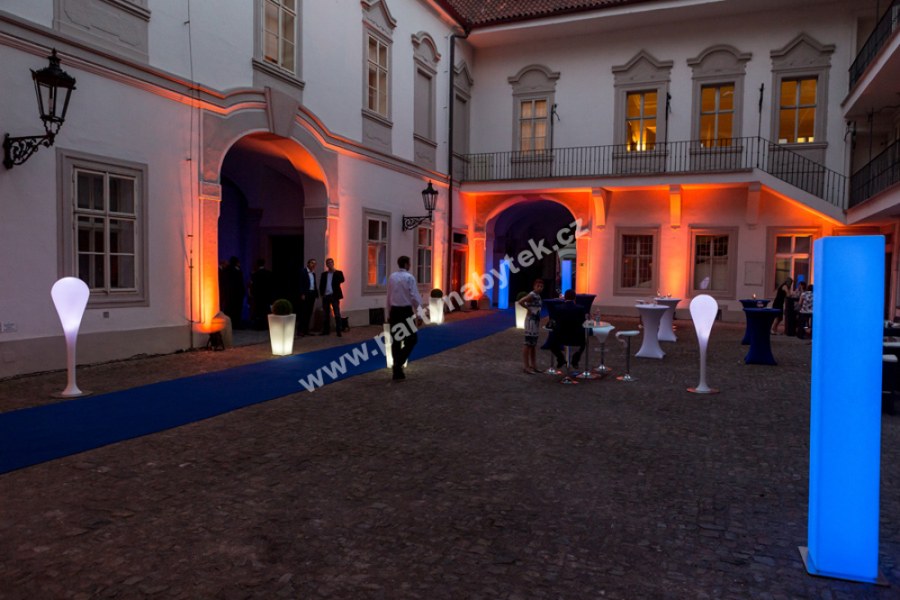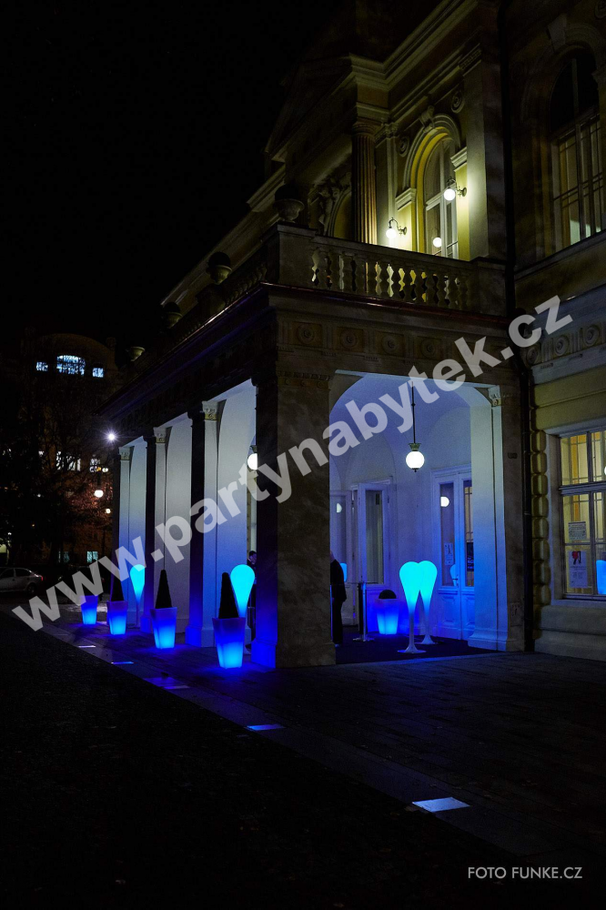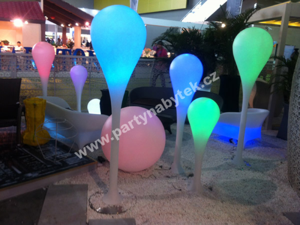Lampa z bíle mléčného polyetylenu, kterou lze použít jako svítící dekoraci. Příjemné a měkké světlo, vycházející z lampy, poskytuje orientační osvětlení s dokonalým rozptylem světla, které umocní atmosféru sálu nebo zahrady. Lampa je doplněna LED podsvícením na dálkové ovládání, které umožňuje funkce různých barev a intenzity a svítí s vlastním zdrojem bez kabelu. Vhodná pro vnitřní i venkovní použití.