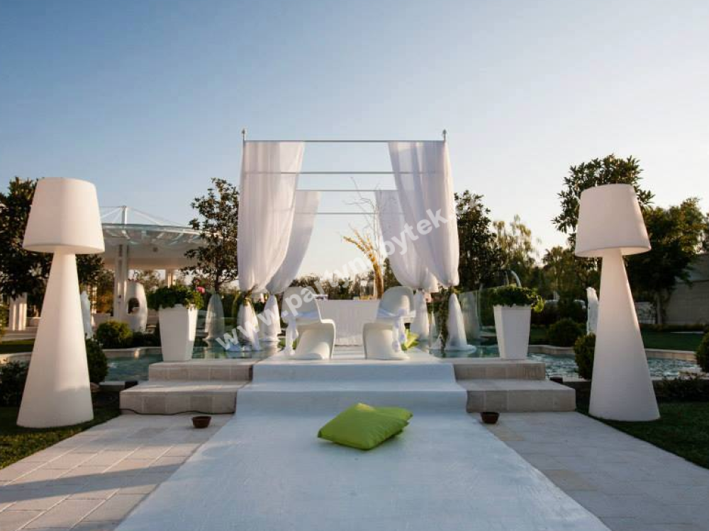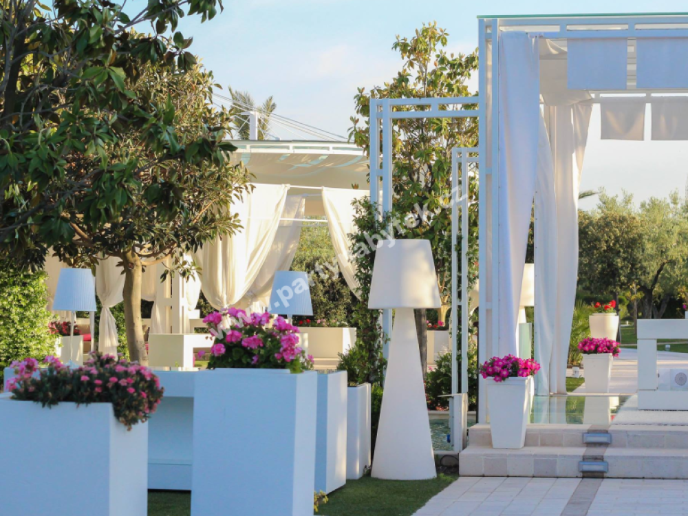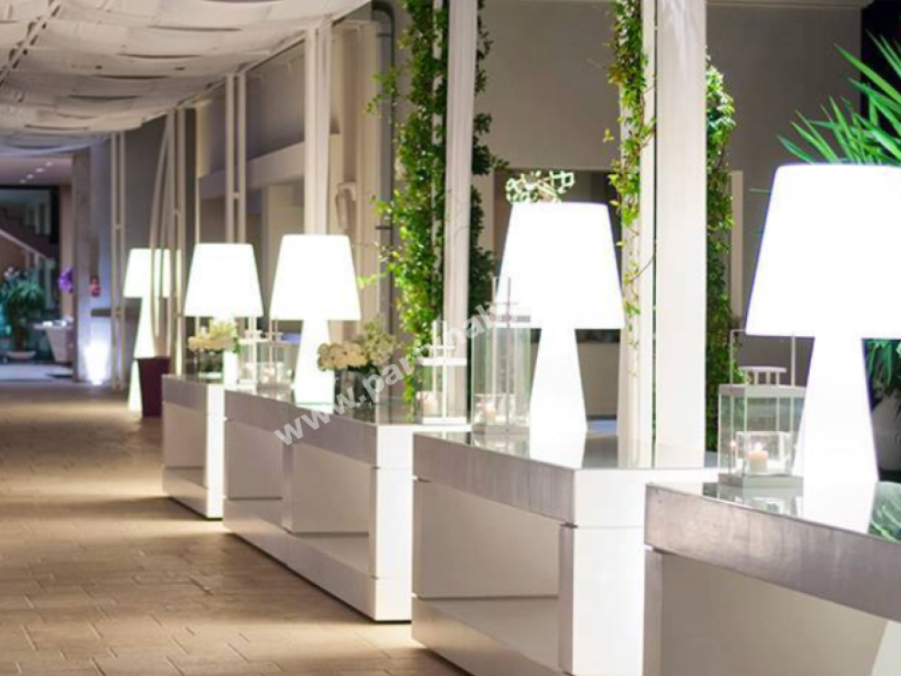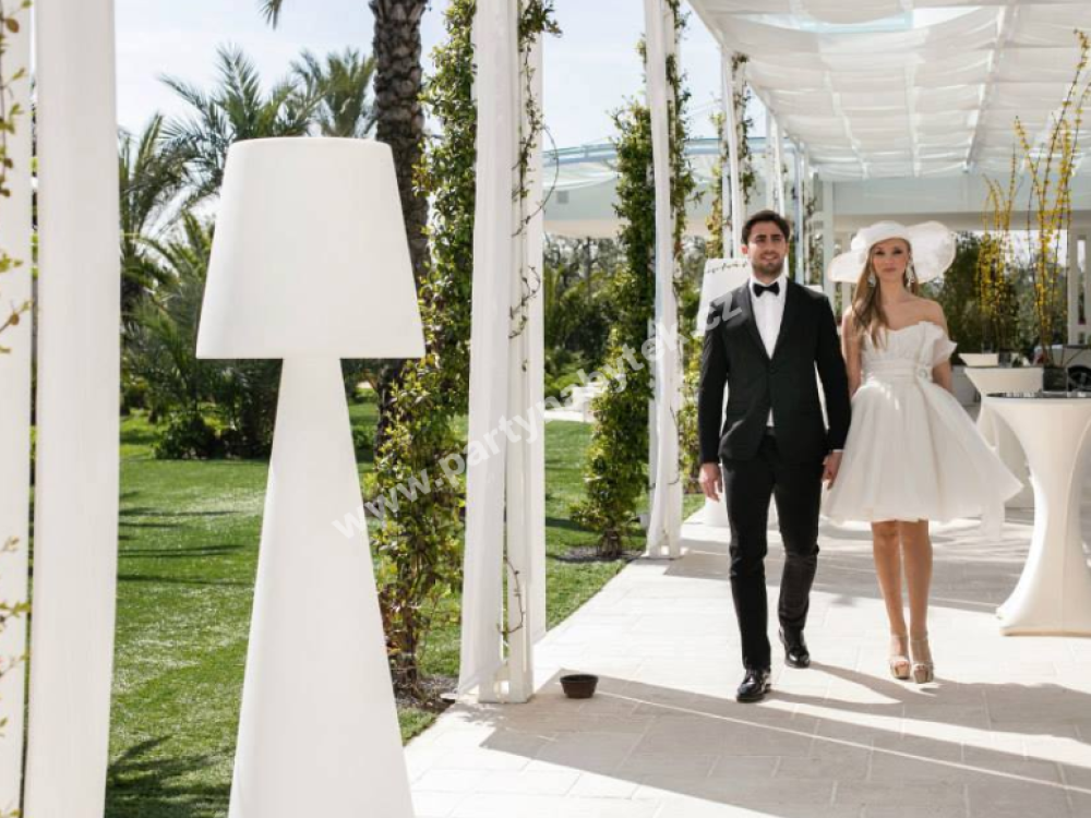 Stojací lampa Pivot je bestsellerem celé produkce proslulé italské značky Slide Design. Díky svému jednoduchému, ale nezapomenutelnému designu se stane dominantou každého eventu. Pivot je dílem designéra Carla Constantini. Její lineární design je výsledkem dokonalého spojení kónického tvaru základny a klasického tvaru stínidla, vyrobených z jasně bílého polyethylenu. Jedná se o obří lampu výšky 210 cm a průměru 70 cm. Hlavní charakteristikou lampy Pivot je textura na stínidle, která připomíná klasický motiv arabesky. Pivot obohatí každý druh vnitřního i venkovního prostředí, ideální pro moderní i elegantní eventy.