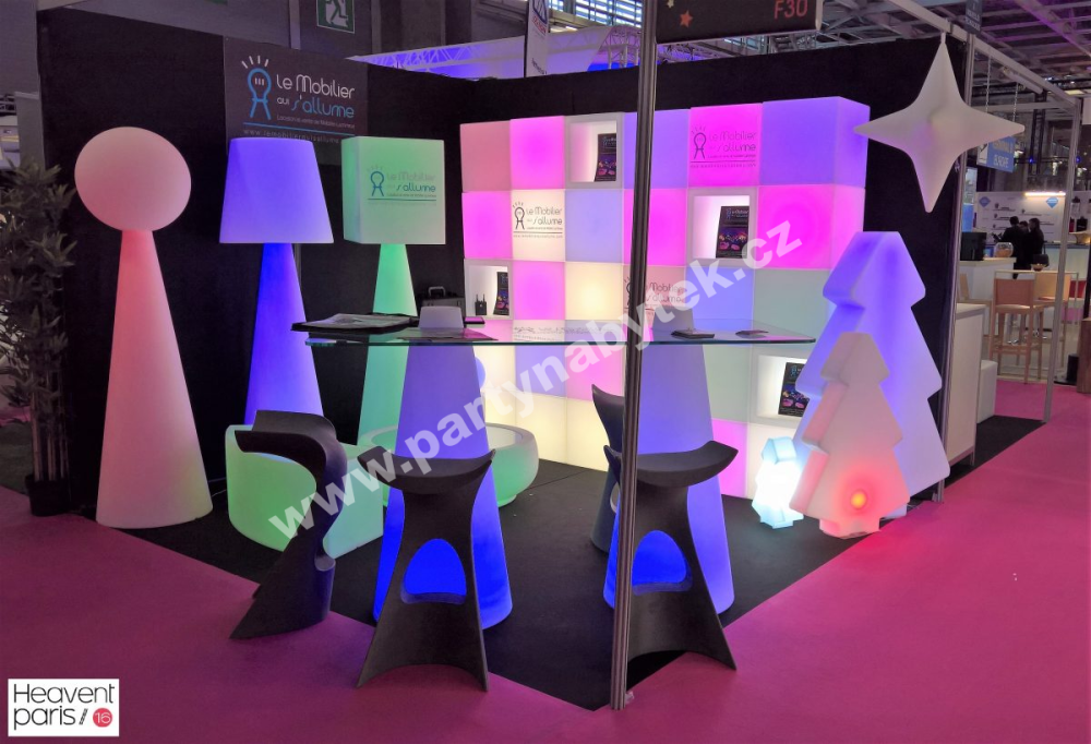 Stůl je doplněn 2 x RGB LED podsvícením na baterii, s dálkovým ovládáním, které umožňuje funkce různých barev a intenzity. Svítí s vlastním zdrojem bez kabelu, s výdrží cca 8 hodin.