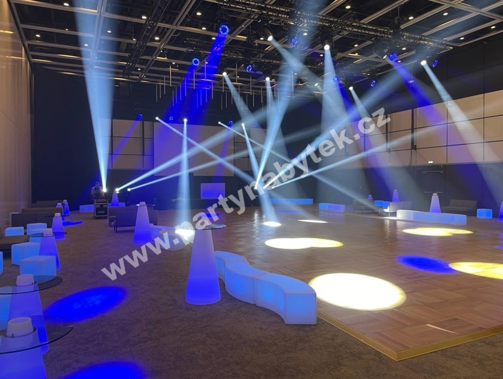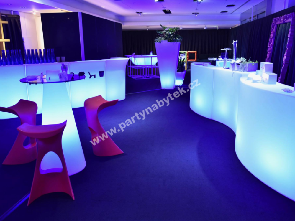 Stůl je doplněn RGB LED podsvícením na baterii, s dálkovým ovládáním, které umožňuje funkce různých barev a intenzity. Svítí s vlastním zdrojem bez kabelu, s výdrží cca 8 hodin.