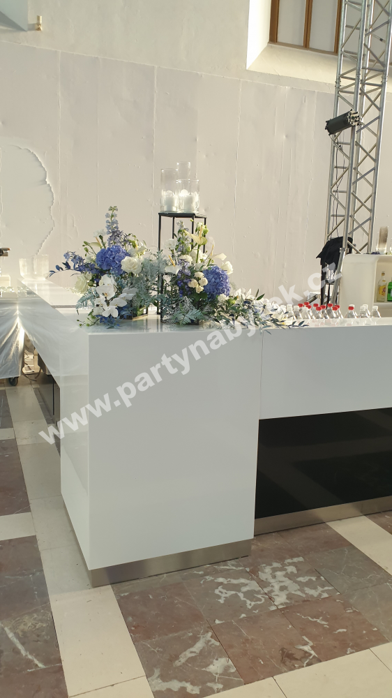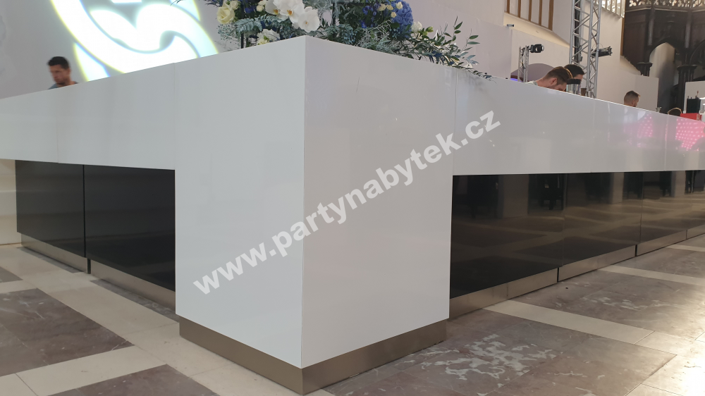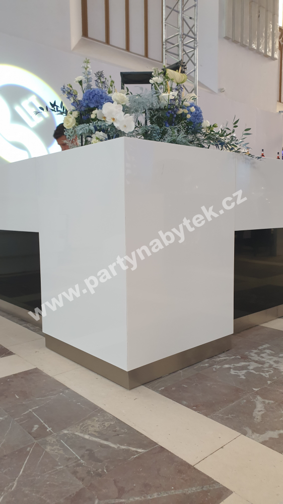 Monolitický kvádr z naší designové kolekce nábytku Duplex ve stylu loft, která je charakteristická čistými estetickými liniemi, umocňujícími působivý industriální vzhled. Jedná se o samostatný solitérní kvádr (podstavec) opláštěný ze všech čtyř stran lesklou deskou z umělého kamene, které jsou nad zemí opatřeny nerezovou okopovou lištou. Horní lesklá deska je ze stejného materiálu a stejné barvy, jako opláštění. Kvádry mají aretovací nožky s ochrannými koncovkami, proti oděru podlahy.  Monolity Duplex jsou variabilně sestavitelné s našimi bary a pulty Duplex, při použití v rozích barů vytváří zajímavé dekorační rohové prvky. Lze je použít také samostatně, jako obří solitérní podstavce nebo pulty v prostoru. Pro maximální dekorační efekt je doporučujeme použít s našimi obřími dekoracemi ve vázách (nejsou součástí ceny půjčovného kvádru).