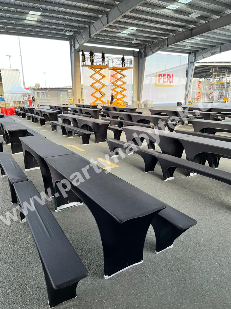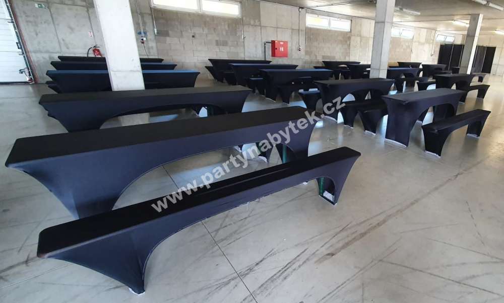 Sada elastických potahů ušitých na míru klasickému pivnímu setu : 2 lavice 220x25 cm + stolu 220x50 cm.  Jedná se o moderní elegantní potah z elastického strečového materiálu. Sada obsahuje 2 potahy na lavice a potah na stůl, jehož součástí je také podkladový elastický návlek na desku stolu. Elastický potah snadným a rychlým způsobem promění obyčejný pivní set v elegantní tabuli.