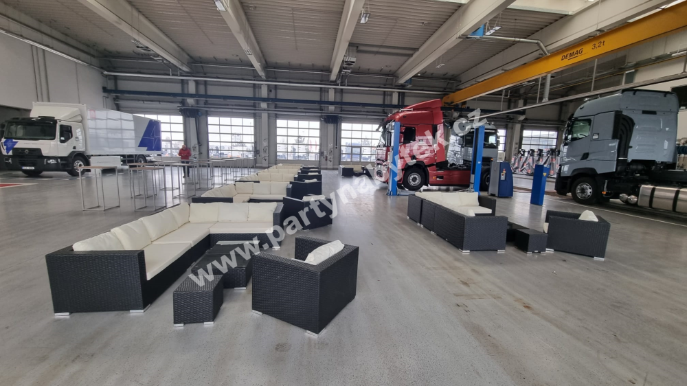 rohová sestava pro 8 osob s křeslem, taburetem, stolkem