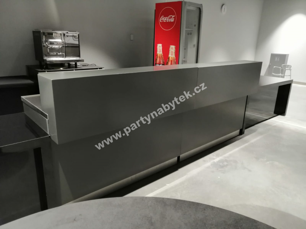 Pult z naší designové kolekce nábytku Duplex ve stylu loft, která je charakteristická čistými estetickými liniemi, umocňujícími působivý industriální vzhled. Jedná se o samostatný solitérní pult (kvádr) s konstrukcí z nerezové oceli opláštěné ze všech čtyř stran lesklou deskou z umělého kamene, které jsou nad zemí opatřeny nerezovou okopovou lištou. Horní lesklá deska je ze stejného materiálu a stejné barvy, jako opláštění pultu. Pulty mají aretovací nožky s ochrannými koncovkami, proti oděru podlahy.  Pulty Duplex jsou variabilně sestavitelné do řad a různých tvarů. Celoopláštěné provedení umožňuje také umístit pult do volného prostoru.