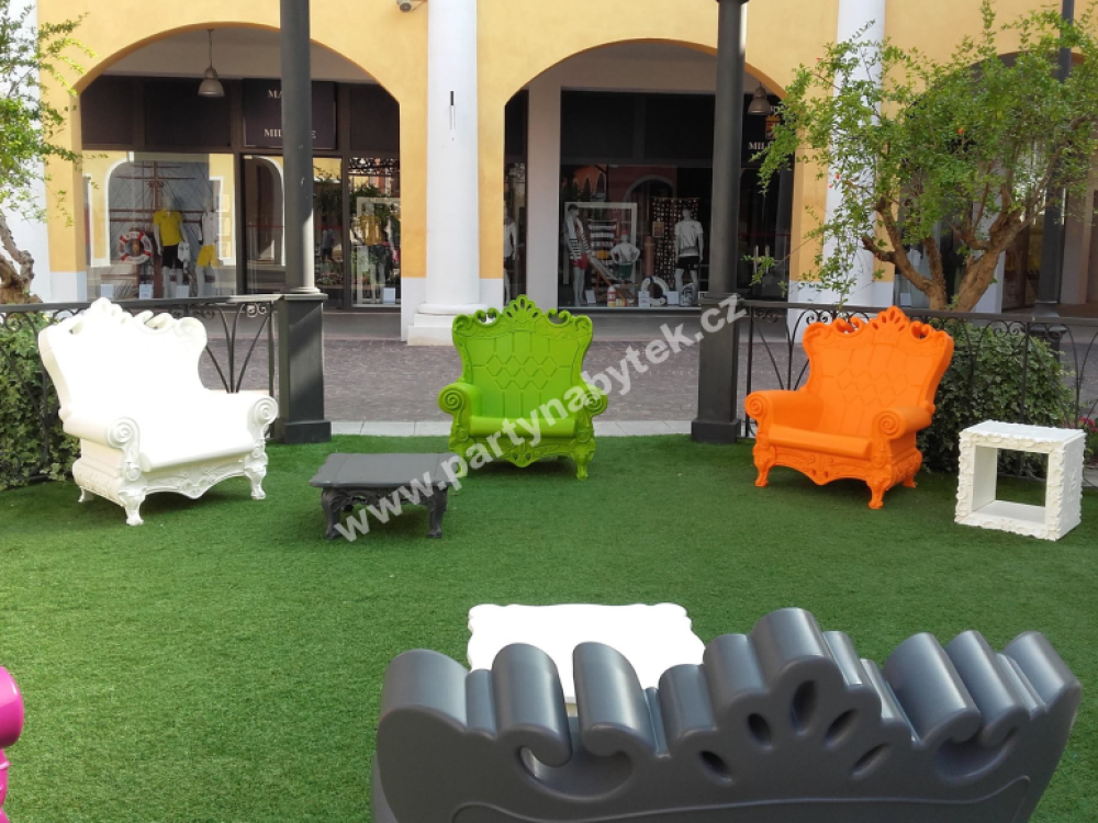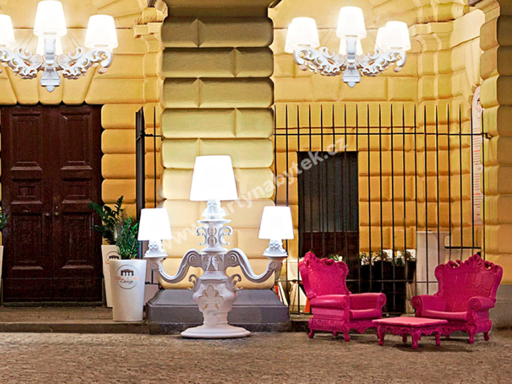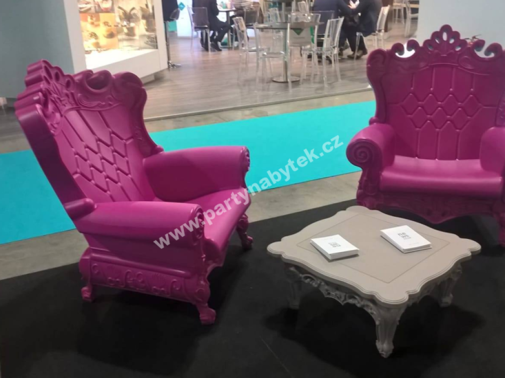 Designový nízký stolek Prince of Love pro milovníky designu, inspirovaný italským barokním uměním. Tento stolek vás okouzlí svým elegantním designem, který propůjčí vašemu prostoru špetku luxusu.  Stolek je jedním z produktů kolekce Design of Love, jenž se zrodila z kreativity italského designérského dua Graziano Moro a Renato Pigatti. Ti vytvořili starožitnou, ale zároveň současnou kolekci, která v sobě kombinuje moderní design a barokní styl – ta se stala také bestsellerem slavné italské značky SLIDE, kde byl stolek vyroben. Prince of Love je plný detailů, jako typický barokní styl, ale je současný, popový a ironický díky materiálu, ze kterého je vyroben - polyethylenu.