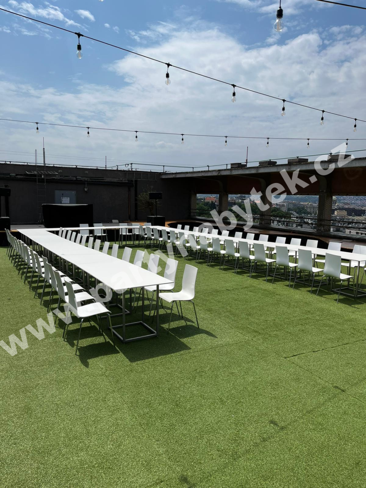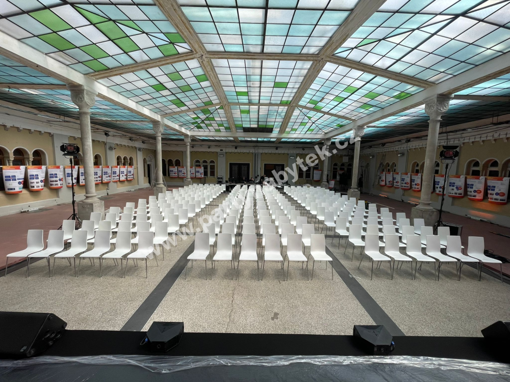 Židle v moderním designu na ocelové chromované podnoži. Sedák s opěrákem jsou tvořeny jedním kusem výlisku kvalitního pružného plastu, který dodává židlím minimalistický vzhled. Díky jedinečnému vytvarování jsou neskutečně pohodlné a proto se ideálně hodí pro konference, módní přehlídky, ale i na gala večeře v moderních interiérech. Nabízíme také s propojovacími spojkami pro umístění v řadách.