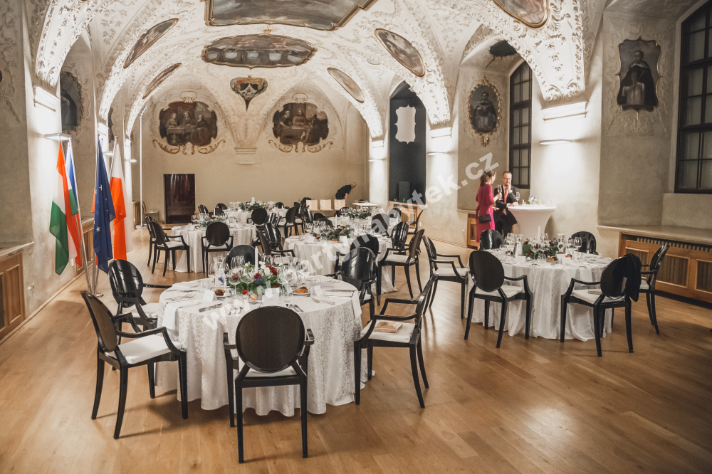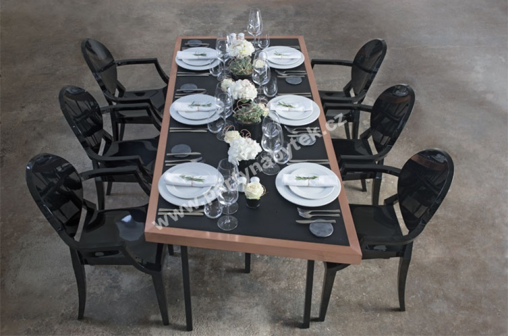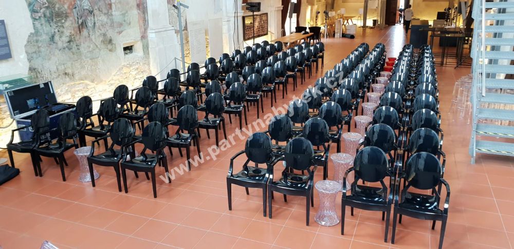 Reprezentativní židle v moderně barokním stylu Ludvíka XV., inspirované projektem Louis Ghost, budou šperkem každé akce a dodají jí punc královské hostiny. Zakulacené opěradlo připomíná svým tvarem starý medailon, zatímco sedák je lineární a geometrický. V tomto černém vysokém lesku působí velice elegantně. Židle Ludvík díky svému tvaru křesílka s područkami jsou velmi pohodlné a stabilní. Jsou vyrobeny z extrémně kvalitního polykarbonátu, proto jsou lehké a přitom vysoce odolné. Nabízíme v několika barevných variantách, také s polstrovanými podsedáky.